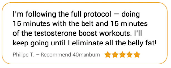 Get your 40ManBurn™ technological belt — in just 15 minutes it performs 500 crunches, accelerating fat burn and muscle definition — plus the Testosterone Boost Workout, a quick 15-minute video that burns fat all over your body.
